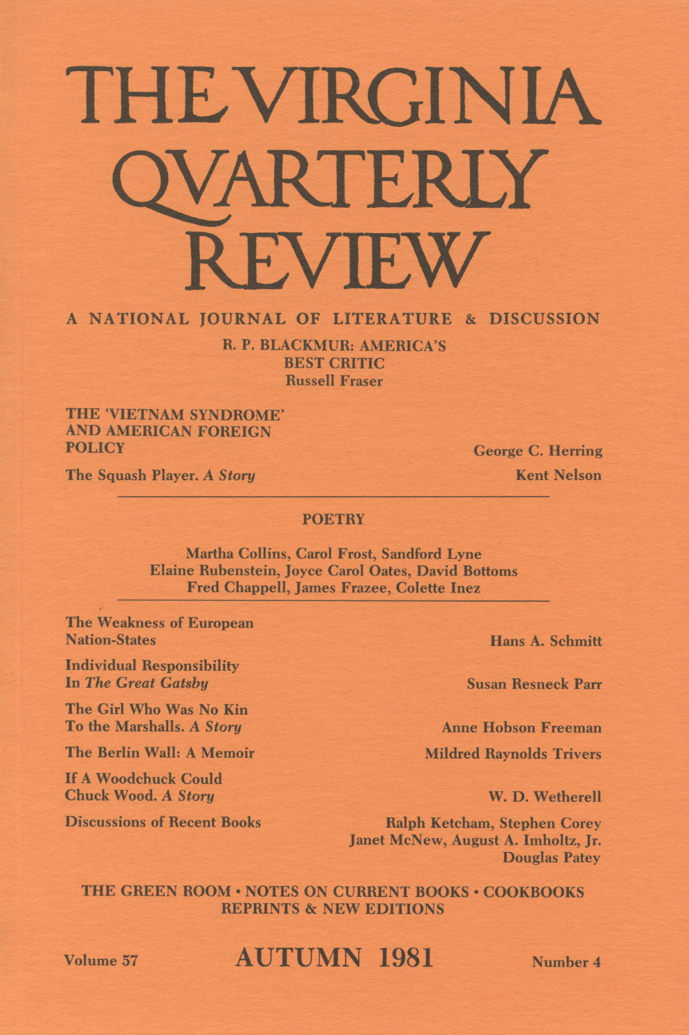 Stories by Russell Fraser, George C. Herring, Hans A. Schmitt, and Susan Resneck Parr